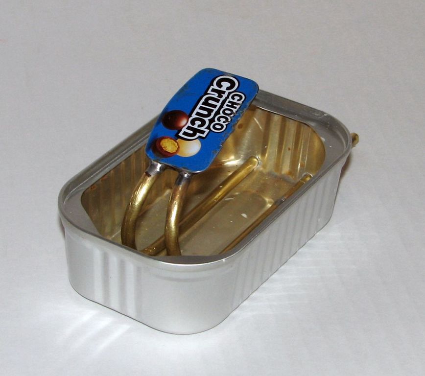 Co budete potřebovat? Nejdříve zajděte do obchodu, kde si koupíte krabičku sardinek v oleji, čokoládové bonbóny v plechové krabičce, pivo v plechovce a čínský luncheon-meat v krabičce podobné té od sardinek. Ještě doporučuji chleba nebo housku. Doma vše s maximální opatrností otevřete a snězte a vypijte. Prázdné obaly nevyhazujte, ale dejte do myčky. Pak ještě skákněte do nějakého „xHouse“, kde za pár korun koupíte mosaznou trubičku o průměru 5 mm. Pak ještě budete potřebovat epoxid 3-TON QUICK s kovovým plničem (vydrží až 120 °C), pájku, cín, kousek drátu a hodně fantasie. Pokud to všechno provedete v pátek (a nebude vám špatně od žaludku) v neděli už váš parníček může brázdit hladinu bazénu, umyvadla anebo jiné louže.