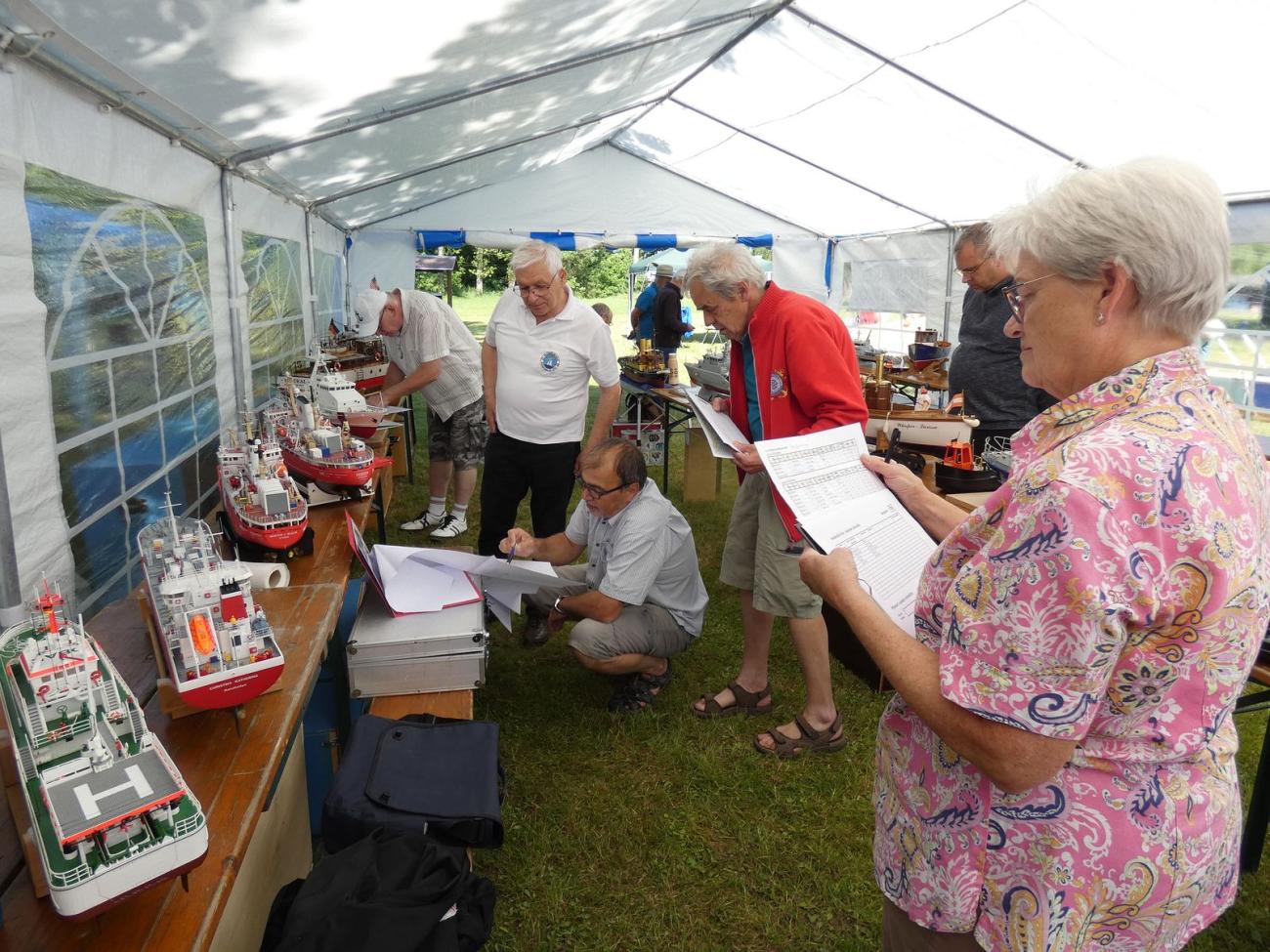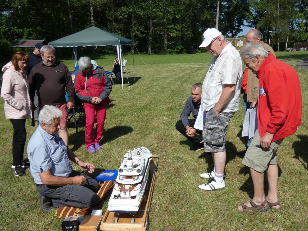 Opět jsem vzal svůj parník Saturn a tu tam přiložil ruku k dílu jako rozhodčí. Specifikum této soutěže totiž je, že zapisuje ten, kdo má zrovna čas, chuť a volné ruce. O dokování se staral Karel Filip, což na celodenním slunci nebylo jistě jednoduché. My ostatní jsme se schovávali do stínu pod okolní stromy.