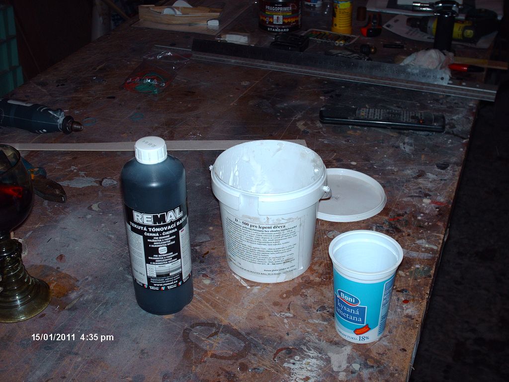 Po zaschnutí lepidla sa už postupovalo podobne, ako u Vás na Marse :-) ( prebrúsenie, morenie, impregnácia)