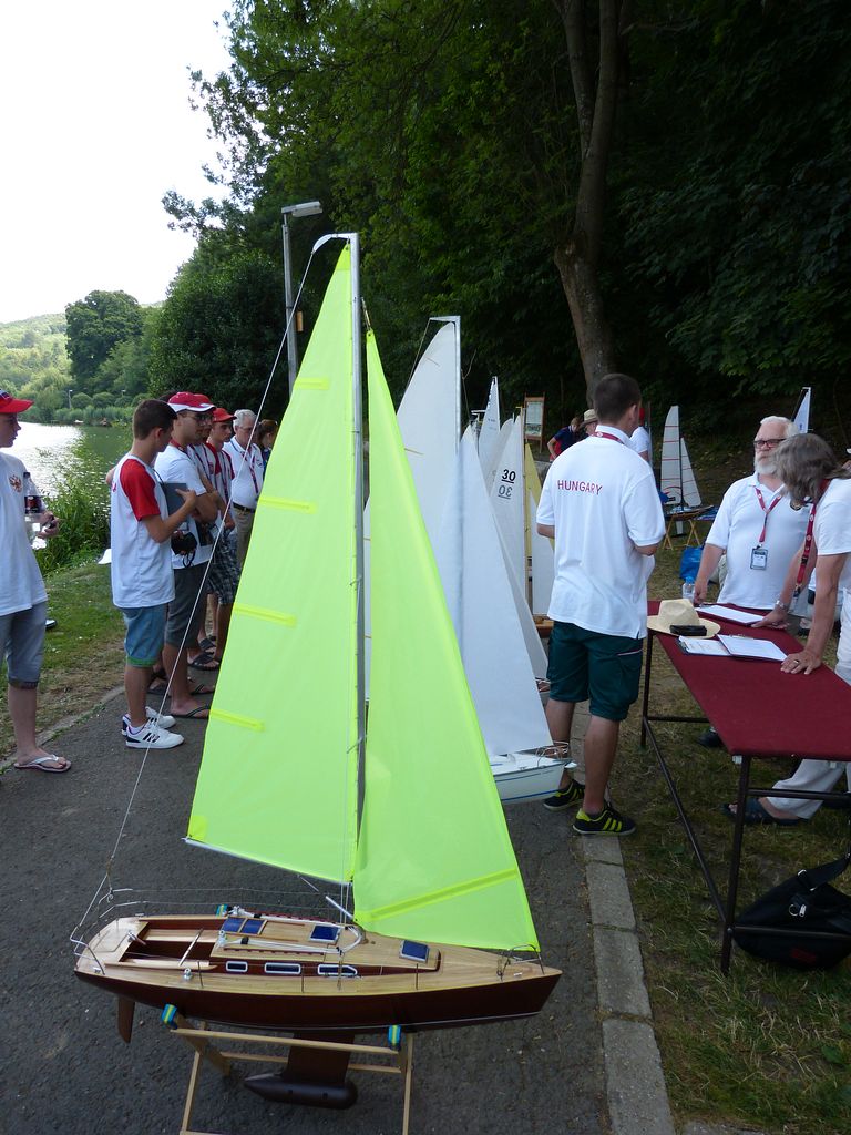 V NSS-B je 13 seniorů a dva junioři, mezi nimi dva naši zástupci Josef Mrákota s Jolie Brise s nejvyšším bodováním v plachetnicích – 98,33b a Jarda Zeman s Brilliantem – 89,67b, bohužel obě plachetnice patří k těm větším méně obratným, takže uvidíme, jaký bude vítr. Alespoň v této kategorii plachetnic se zatím objevují jen klasické stavby modelů lodí z první poloviny 20. století, v tom duchu jak byly tyto maketové plachetnice zamýšleny. K bodování NSS-B jsou nakonec přihozeny i plachetnice NSS-C, ve které je pouze pět skoro jen „československých“ závodníků. Lenka Mrákotová s Jestrem, o kterém rozhodčí stále neví, jestli bude v NSS-B nebo NSS-C, nakonec to částečně nechávají na závodnici s dotazem, zda chce jet NSS-B nebo NSS-C. Končí tedy u C-ček s 83,33b. Dalším našim je René Walenta s Pionýrem – 75,33b a František Chmelka s No Name – 70b. Českou trojici doplňují Štefan Abel se Sultanou – 84,33b a Bělorus Jurij Lukjaněnko s Zoll Kutter – 65b, který dolepuje některé díly ještě před rozhodčími.