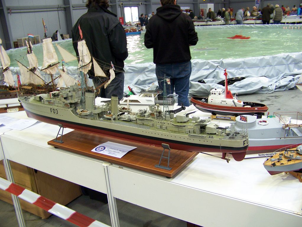 V pátek byl běžný pracovní den, a proto nás u bazénu mnoho nebylo. Navíc někteří využili příležitosti a jeli se podívat na Modell Hobby Spiel do Lipska. Kruhový bazén o průměru 15 metrů se tak stal jakýmsi mořem, kde se proháněly naráz průměrně tři lodní modely, což není mnoho. Pokud k tomu připočteme skutečnost, že jsme se o volné kanály po hodině dělili s automodeláři, pak náhodný návštěvník musel nabýt dojmu, že u bazénu chcípl pes. Jelikož se na společné prezentaci lodních modelů podílelo více klubů, tak jsme se k sobě navzájem pořádně ani nedostali a nějaké přeřvávání se přes celý bazén by nepadalo v úvahu.