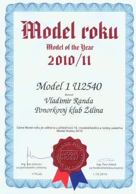 Model ponorky U-2540 Vladimíra Randy z Ponorkového klubu Žilina obdržel ocenění Model roku 2010/2011.