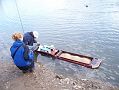 Když už je řeč o těch vanách, tak kolektiv kolem vítězného týmu z Mostu v těžkém TT přivezl též zbrusu novou atrapu taženého kolosu, jejíž případné nasazení bude další zatěžkávací zkouškou soutěžních týmů. O zátěž se stará zaplavovací komora. Do vody to šlo relativně hladce, vyzdvižení z vody bylo asi zajímavější, jenže toho jsem se nedočkal. Pánové se totiž vydali na pouť kolem celého rybníka, avšak u stavidla se jim nějak zalíbilo, takže jsem na návrat nečekal.