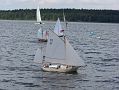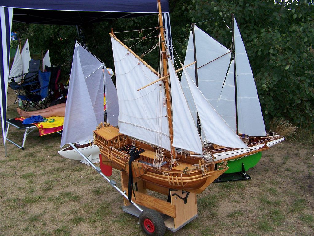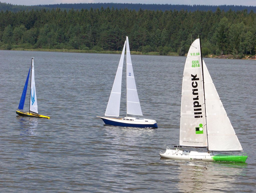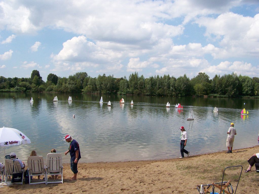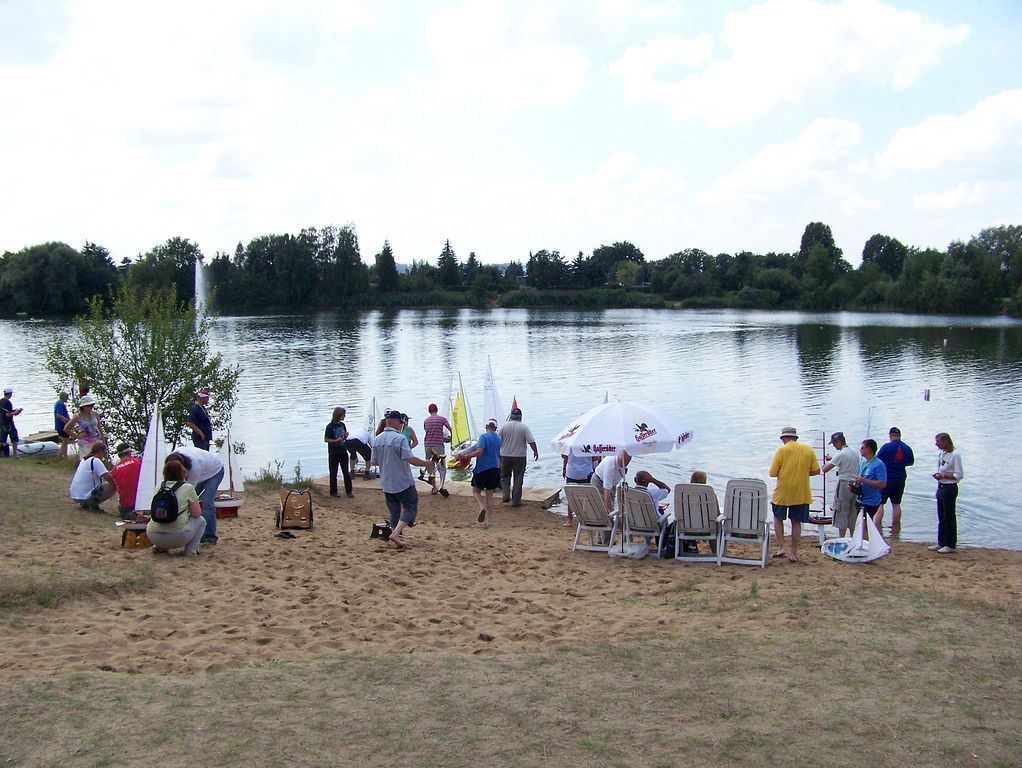Ráno kolem deváté přijíždím k místnímu yachtclubu a jdu pozdravit přítomné. Na místě jsem hned pokárán, proč nevezu plachetnici, ale opravdu to nešlo. Je pátek dopoledne, takže na start nastupují jen 4 modely: Spray (Šurda), Thalassa (K. Egrt), Illbruck (J. Pešek) a Phantom (duke). Odpoledne dorazil ještě Jindra Culek s Reinke-13M, takže na vodě bylo při soutěži plachetnic pět. Jízdu by suverénně vyhrál Illbruck, jenže vystartoval až později pro nějakou závadu. Proto Spraye předjel jen o kolo. Řada místních z toho měla zábavu, takže účel přátelské soutěže byl splněn. Večer pak dorazil Tujano a Pepa Mrákota, takže sobota byla určitě zajímavější, leč už jsem nemohl být u toho.