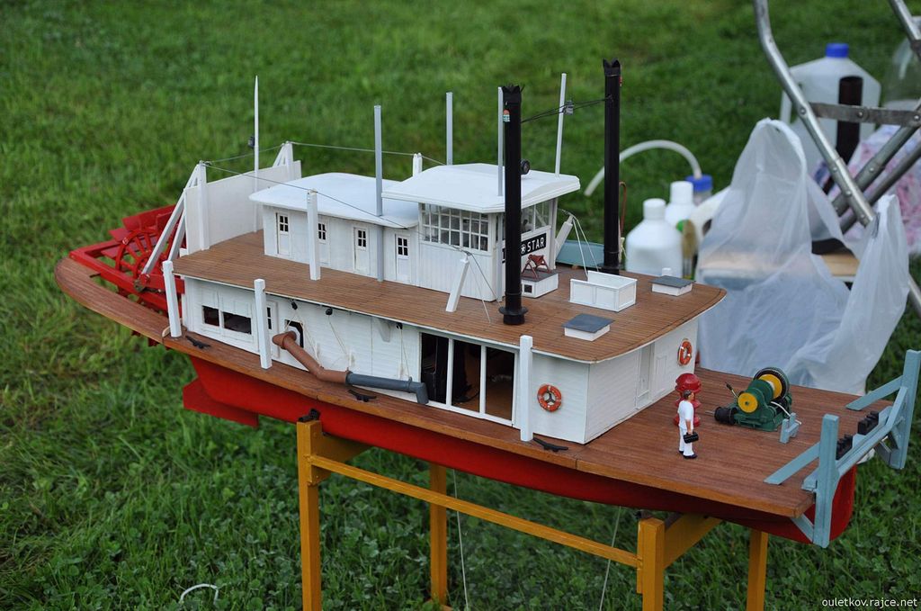 Musím se zmínit o nové lodi Standy Jedličky - zadokolesáček nádherně plul, ale při najetí na bójku dal Standa zpátečku a koleso nahnalo vodu do lodě, ale ta se nepotopila. Standa má trup jako plovák a trocha vody nad čarou ponoru do lodi nepronikla, loď si jen sedla zádí trochu hlouběji, ale problém byl malý dosah vysílačky. Prostě se pro loď muselo dojít pěšky na druhý konec rybníka a odtud jí podél břehu přivést zpátky - snad příště.