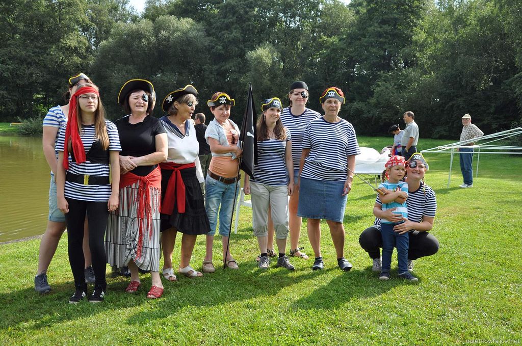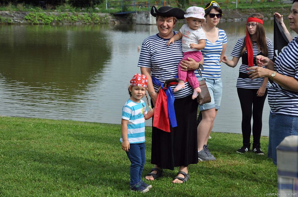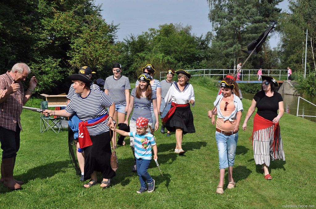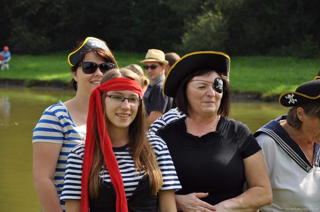 Martinka Svitáková přišla i s velkorážnou hákovnicí za pasem - a malá dcerka Petra a Petry Jíšů měla šavli - jak je vidět, u pirátů se musely ohánět zbraněmi i děti. Zrovna si nevzpomínám na nějaký vhodný film s touto tematikou, pokud tedy pominu pana Sandokana a podobné „kusy“. Za našeho mládí bylo podobných filmů určitě dostatek. (Geena Davis coby kapitánka pirátů taky nebyla k zahození, a to nemluvím o hraběti Joffre de Peyrac s Angelikou - určitě si každý vzpomene na podobné filmy.)