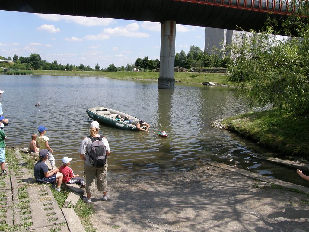 Pokud by nepanovalo takové vedro, tak jsme mohli trojúhelník protáhnout přes celý rybník a objíždět při putovní regatě i ten ostrov, ale na to nebylo sil.