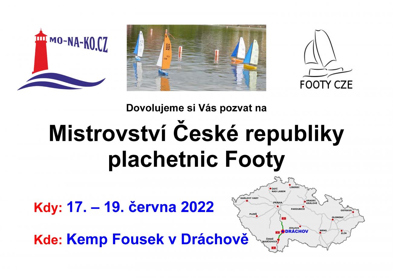 Od pátku 17. června se to bude v jihočeském Dráchově hemžit modely malých plachetnic třídy Footy, jelikož se na tamním rybníce v Kempu Fousek již potřetí uskuteční víkendové mistrovství České republiky. Vše nasvědčuje tomu, že i tentokrát proběhne s mezinárodní účastí. Ostatně lokalita poblíž dálnice D3 (mezi Soběslaví a Veselím nad Lužnicí) k účasti přespolních přímo předurčuje. Kemp vznikl na zelené louce až v tomto století, což se ostatně týká i zvolené vodní plochy. Přijeďte a uvidíte.