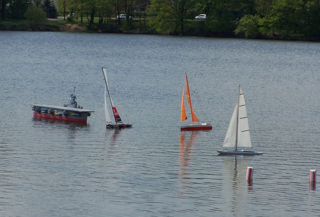 Od sobotního rána a po celý den se sjížděli další modeláři a na vodě se to začalo hemžit různými modely od motorových lodí po plachetnice. Bylo vidět i několik pěkně létajících hydroplánů. Ti nejvytrvalejší si mohli zajezdit až do pozdních nočních hodin, kdy hladinu osvítil blikající maják a krásně osvětlené lodní modely brázdily hladinu.