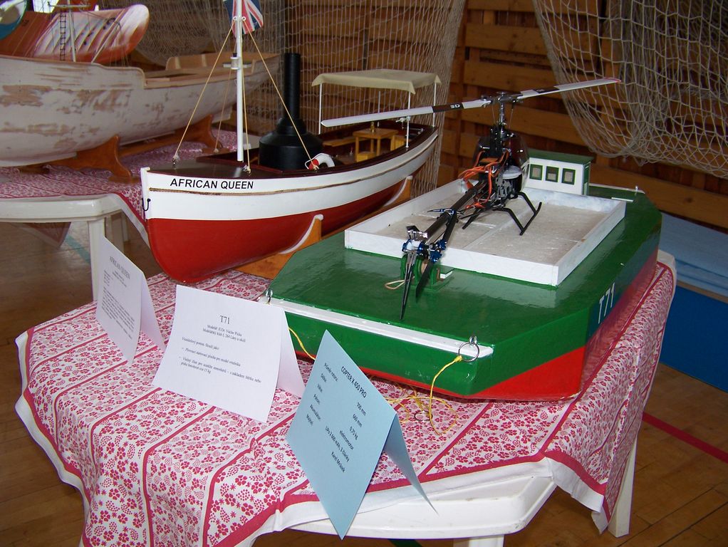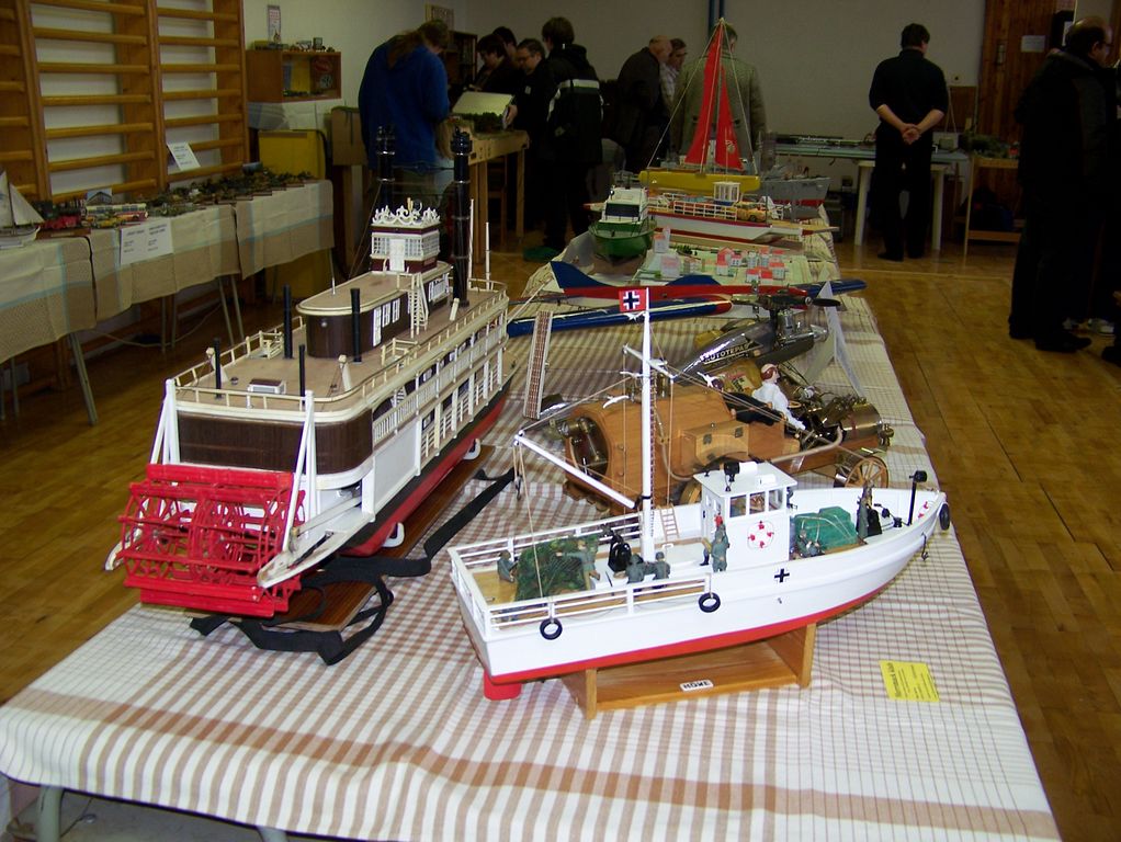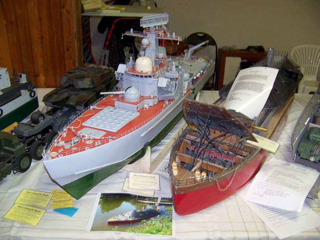 Kolem celé haly visely na zdech modely letadel, po hale se létalo a jezdilo. Prostě krása. Lodní modely byly převážně v přísálí, kde jim nehrozilo nebezpečí od padajících letadel. Kromě pana Voráčka a jeho parního prkna byly k vidění modely klubu Merrimack, místních modelářů a modelářů z Lán a okolí.