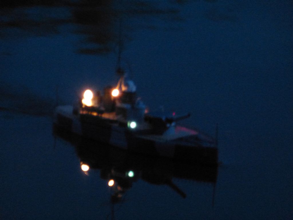 Jestliže na dříve k tomuto účelu využívaném Košíku ve všední den byla sedmá večer časem, kdy se lodní modeláři teprve začínali trousit, zde jich bylo od počátku nejvíce a postupně ubývali. Skutečných nočních jízd, kde již osvětlení modelů vyniklo, se zúčastnily jen dva modely. Jednalo se o Svennyho Springera a jednu z mnoha vojenských lodí PetraP. Ostatní modeláři s nastupujícím šerem a sílícím vlivem komárů vyklidili pole.