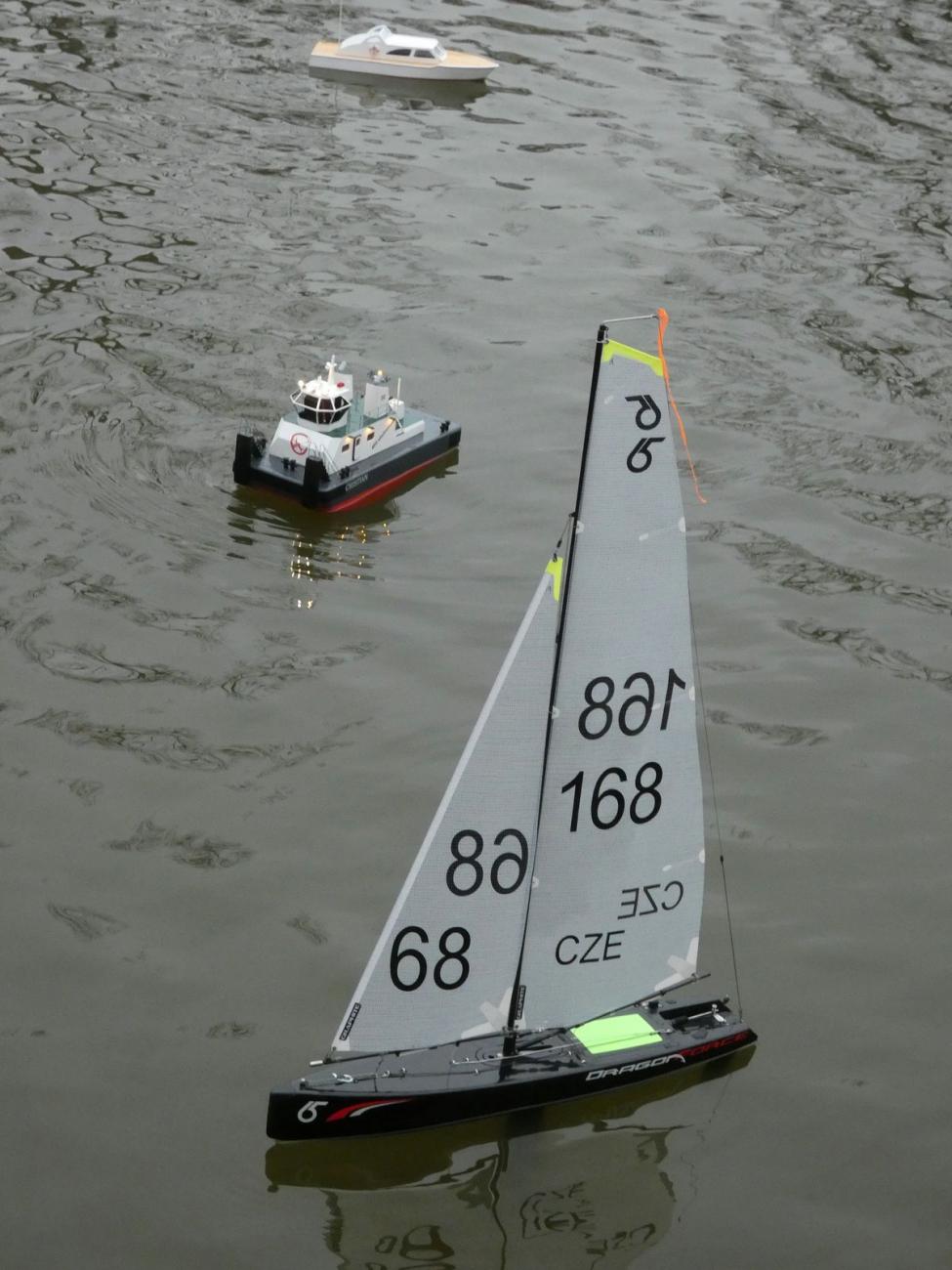 Na vodě byly k vidění plachetnice RG-65, několik modelů Springeru, a pak třeba stavebnice od Petra Vladyky. Zúčastnil se osobně, s další přijel maketář Karel Majer, pro kterého je přecijen kvůli chvilkovému poježdění snazší vytáhnout takovýto jednoduchý model než pracnou maketu. Navíc na srazu není možnost kolize s jinou lodí nikdy vyloučena.