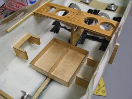 Dále jsou v trupu vytvořené kastlíky pro pohonné baterie (2 x 10 čl. NiCd - 4000 mA), sokly pro serva (HS755MG), zesílení paluby pro uložení vlečného háku a nalepené lišty po obvodu jako doraz při lepní paluby. Na přídi je kastlík pro přijímačové baterie (4 čl. NiCd - 4000 mA), , které současně napájí serva a osvětlení modelu a kastlíky pro kotvy a patka pro příďový úvazník.
