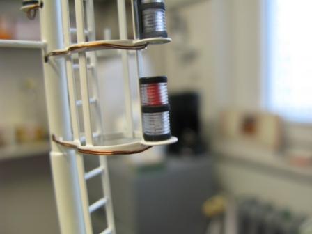 Po výrobě příčného pohonu (i když jej skutečná loď nemá) byl tento zalepen do trupu praskyřicí s namíchanými nastříhanými kousky uhlíkového rovingu.