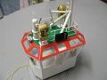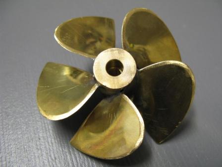 Spíš jsem se pustil do pokusů s pětilistými šrouby, ale ty vzhledem k nízkým otáčkám (2000 ot.) a zvolenému stoupání (1,4 průměru) mají téměr shodné vlastnosti jako čtyřlisté (stoupání dost drsné 1,8). Podařilo se mně po dlouhém bádání a přeměřování upravit nová ozubená kola s modulem 1,5 a poměrem 2:1 a dostat je do stávajících os horního převodu "Z pohonů" a nahradit tak původní kola s modulem 1 a převodovým poměrem 3:1. Tím se zvedly otáčky na šroubu na 3000, výkon (měřěno pouze v tahu na micíři ve vaně) téměř lineárně k počtu otáček a samozřejmě proudový odběr.