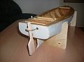 Model jsem dovažoval 0,8 kg mosazi pod kotlem. Olovo pod kotlem mi připadalo méně vhodné. Celková váha modelu i s vodou je 4,2kg. Nad čarou ponoru je sice1,2kg, ale přesto je model dost příčně stabilní. Váha samotného hotového trupu je 1,1kg. Během stavby jsem neustále vše vážil. Délku modelu v podstatě určila váha kotle, proto jsem ho také dělal hned na začátku.