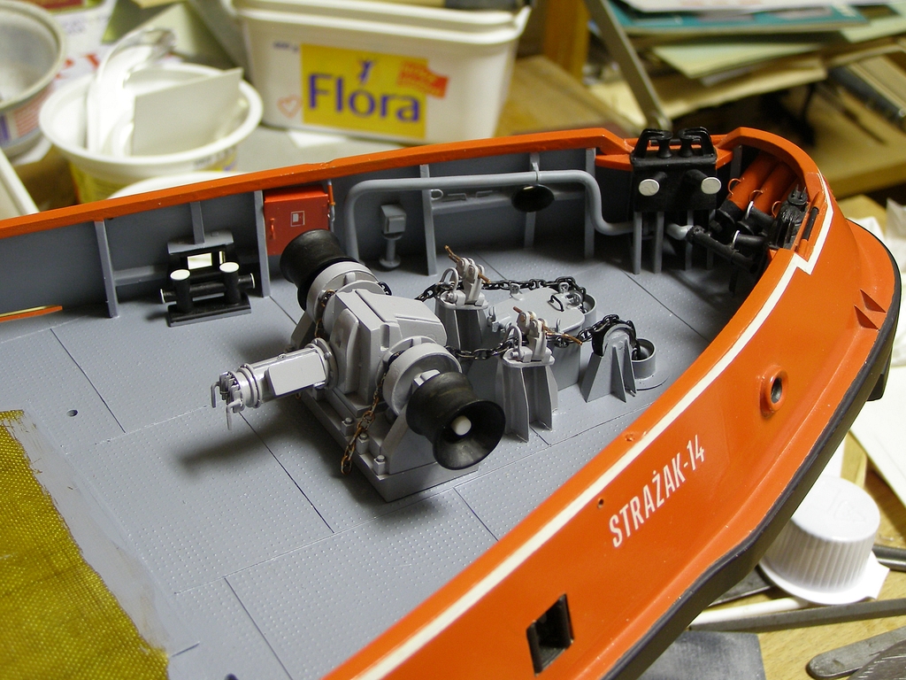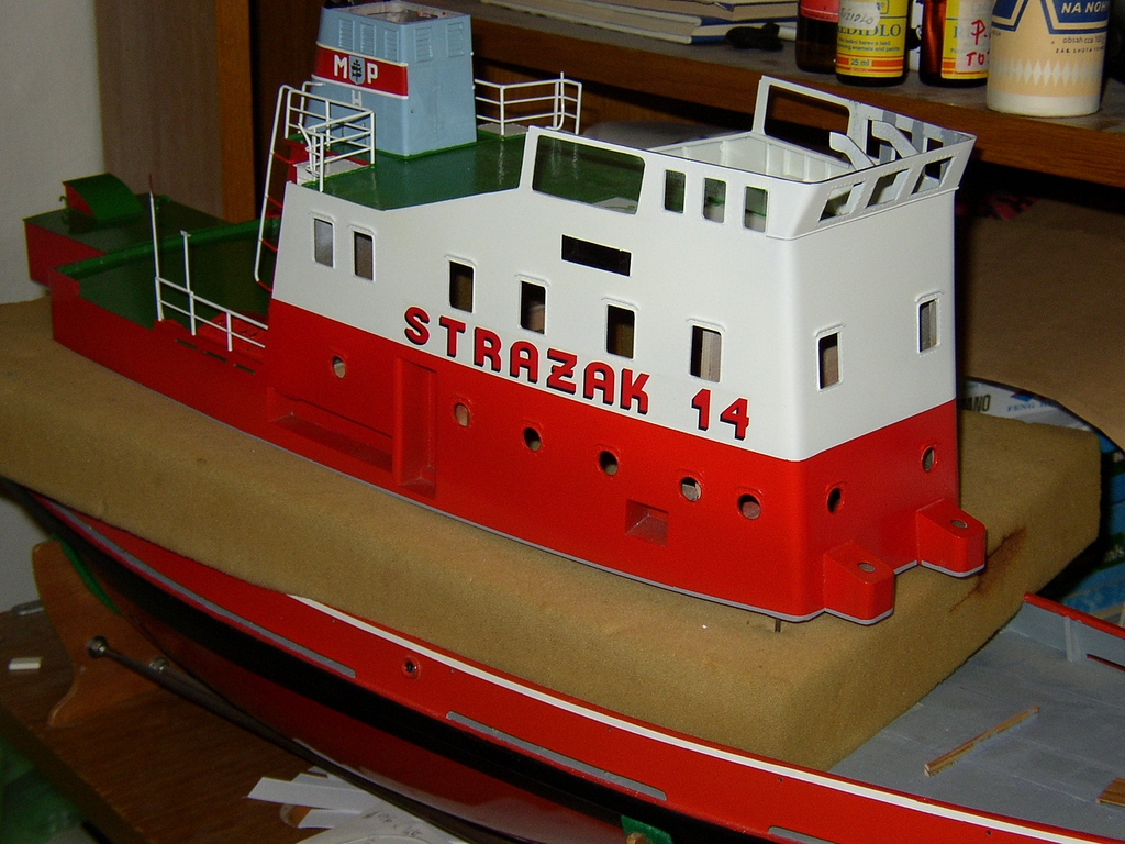 To jsem zrovna dokončil prvou pořádnou maketu, remorkér ODYS, a začal se rozhlížet po nějakém novém plánu na maketu. Silný vliv Miloše Šestáka mne vedl k odmítnutí vojenských lodí, a co bylo tady v republice dál k mání, nebylo nějak zrovna „pravý ořechový“. S tím již jezdil ten, a tady to zase bylo jen na dvou A4 a bez detailů... Však to znáte. Pak se ale objevil přítel dodnes z nejvěrnějších - Standa Jedlička, a nabídl mi kopii polské hasičské lodi (Stražak) se slovy (to jsme si ještě vykali): „Jsou to ale takové velké a strašně složité necky, ale jestli chcete, pošlu kopie.“ Lepší nabídka zrovna nebyla a tak jsem to s povděkem přijal. Po zhlédnutí těch deseti A4 (přímá kopie z Modelarze) jsem zůstal paf.