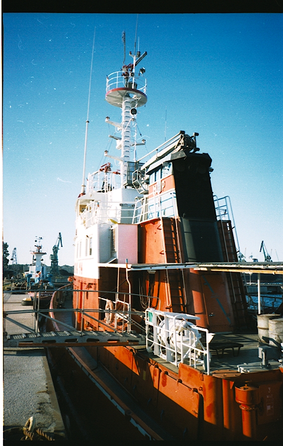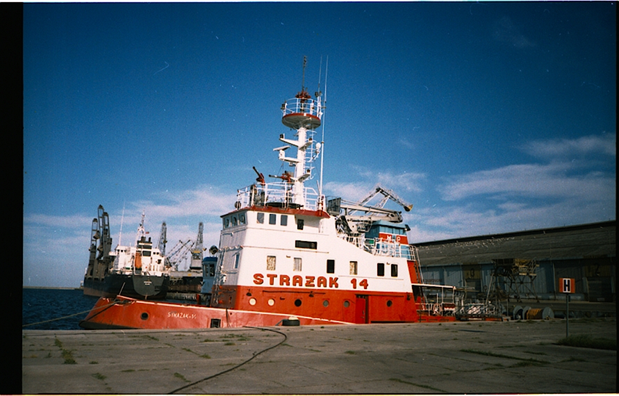 Asi za rok nebo dva jsme opět, tentokrát ale se Standou, vyrazili zase k Baltu a dostali se i do Gdyně, kde měl stát Stražak 14. Ze známého vyhlídkového nábřeží mezi civilním a vojenským přístavem nebyl ovšem vidět. Tak jsme hledali dál. Ostraha přístavu nám řekla, že by mohl kotvit u některého z vnitřních nábřeží, ale dovnitř nesmíme, neb je neděle a není nikoho, kdo by nás tam pustil (oblékni člověka do uniformy a dej mu funkci...). Teď již to nešlo vzdát, když jsme byli tak blízko cíle. Další cesta vedla přímo na kapitanát portu. Službu mající námořní šarže nám ochotně sdělila, že stojí na Duňském nábřeží a pokud seženeme velitele ostrahy a ten dá rozkaz podřízeným, tak nám to domluví. No a tak se z nás stala oficiální „Česká delegace“ mající za úkol zdokumentovat Stražaka 14. Nakonec z toho nebylo jen focení, ale i projížďka po přístavu na palubě Stražaka 11. Hlavně to byl zážitek pro syna, který si to z větší části odkormidloval. Znovu jsem se na něho dostal v roce 1997, kdy jsem dofotil ještě některé potřebné detaily a od pana kapitána dostal na památku námořní vlajku Polska přímo ze Stražaka.