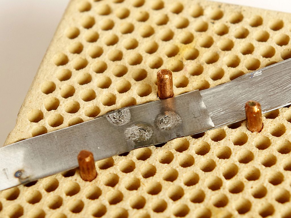 Jde to, smíříme-li se s prodlevami na nabíjení mezi jednotlivými bodovými svary a regulací energie svařování sestavením vhodné kapacity z několika kusů (hrubě) a napětím na kapacitě (jemně). Například jeden jediný Maxwell 350F zvládne dodat energii pro jeden svar tenkých konzervových plechů nebo dvou drátů do průměru 0,8 mm. Na obrázku jsou vlivem nevhodného tvaru elektrod tyto svary ne zrovna úhledné, nicméně dostatečně pevné. Při kapacitě vyšší než 1 kF (3x 350 F) a plném napětí (2,7 V) už se tenčí plechy někdy i roztečou a proděraví.