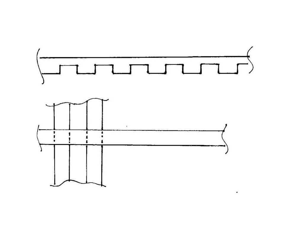 Ve skutečnosti je tento rošt vyráběn skládáním jednotlivých „hřebenů”, které vzniknou vyřezáním zářezů do poloviny šířky trámku roštu.