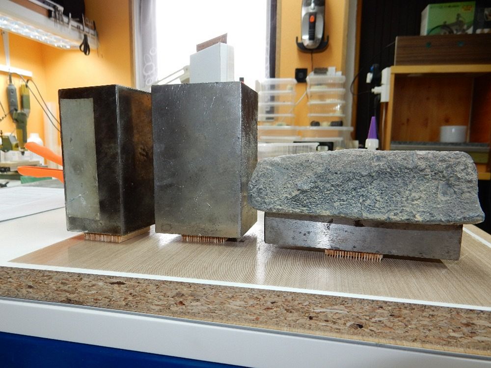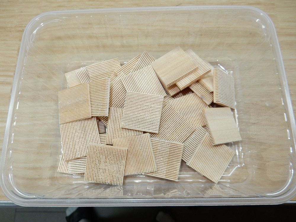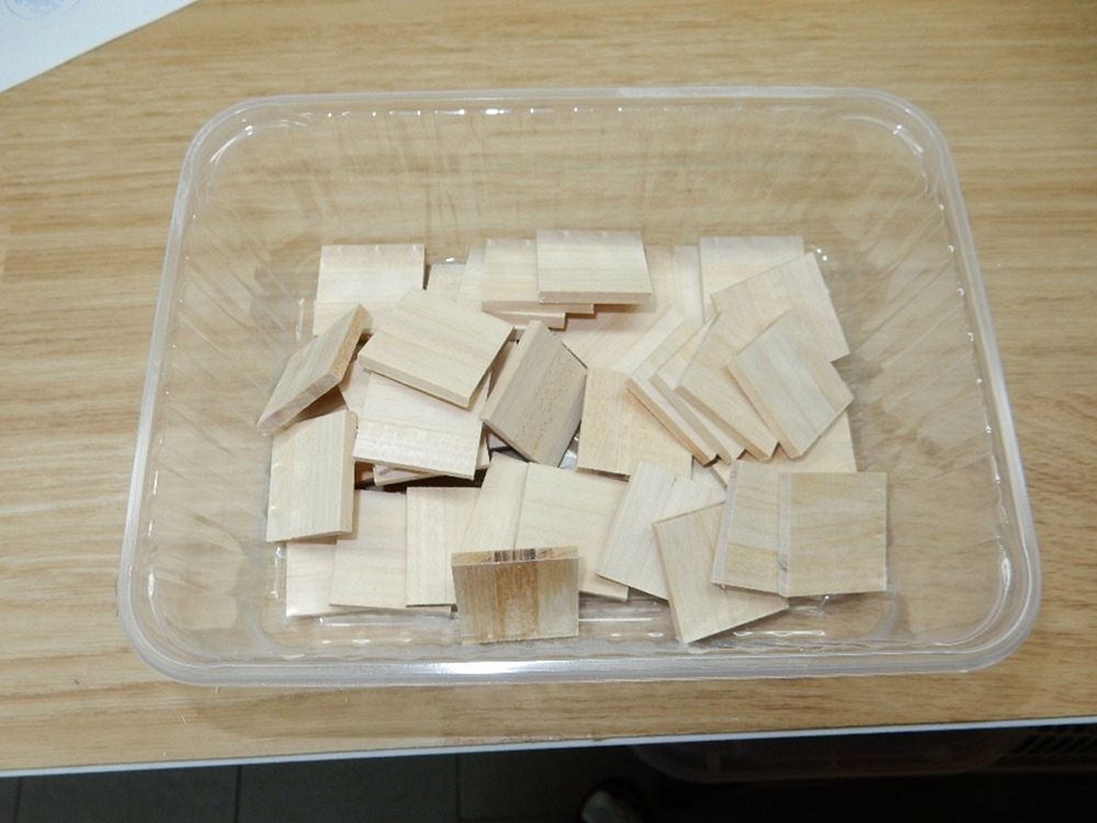 Následně jsem je slepil po třech kusech a obrousil na čtverce 30 x 30 mm.