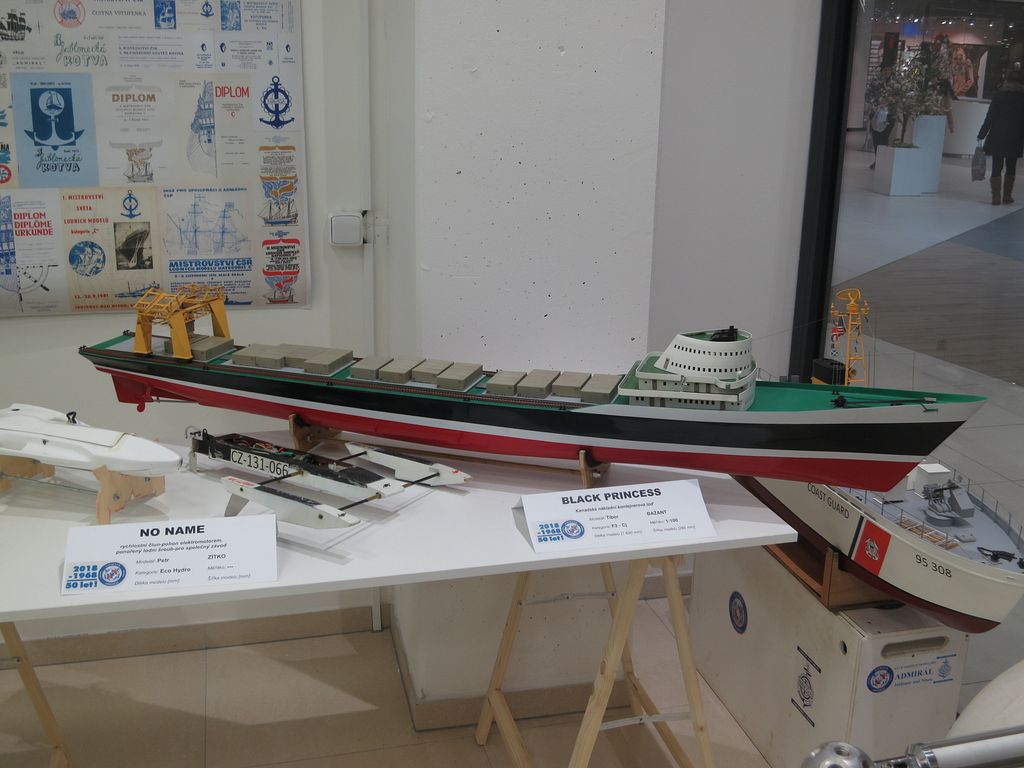 Přestože byly k vidění pouze modely členů klubu, bylo na co se dívat. Jako upoutávka byl hned u dveří model lodi pobřežní stráže USA Vojty Jelínka. Nahodilý divák, který přišel původně jen za nákupy, tak mohl obdivovat modely a makety, které zasvěcený divák zná ze soutěží – ať už motorové modely nebo plachetnice.