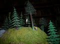 Modelovou železnici jsem viděl naposledy někdy kolem roku 1985, takže železnici s větším rozchodem kol než v té době běžným jsem viděl poprvé v životě (asi jde o velikost O?). Ta mne zaujala nejvíce i díky rozličným efektům. Např. při brzdění vlaku realisticky pískaly brzdy. Vagony byly mezi sebou spojeny nejspíš magnetem (žádný háček a naproti dírka). Stálo za to počkat si na spuštění parní lokomotivy, která mě absolutně dostala svojí realistickou funkčností. Mám pocit, že nejenom charakteristický zvuk parního stroje ale i kouř z komína se měnil podle rychlosti jízdy. Hustota kouře byla dle mého názoru zcela měřítková.